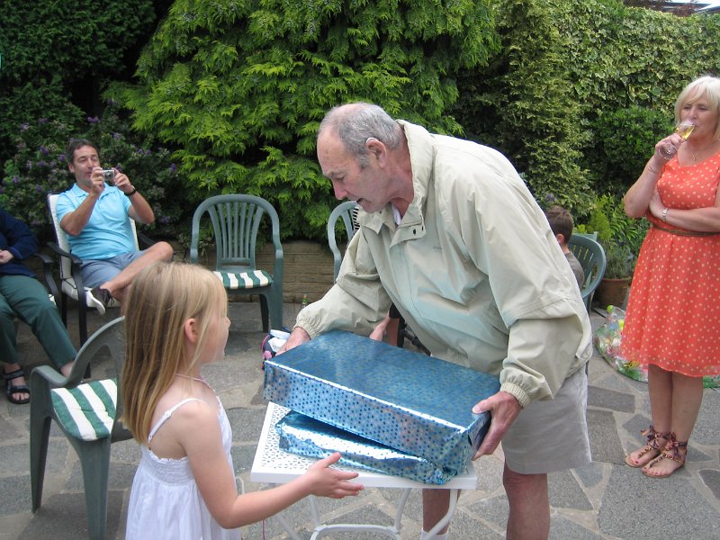Amelie helping with the present