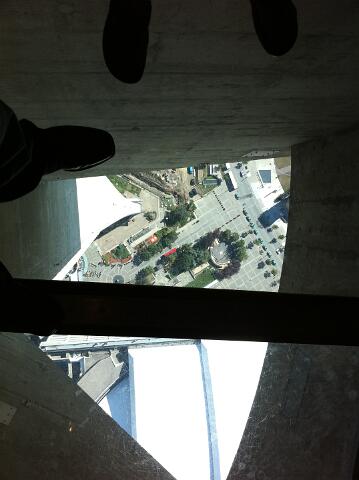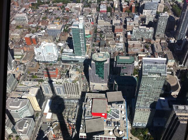 Looking down from 1122 feet (113 Stories) up at the CN Tower