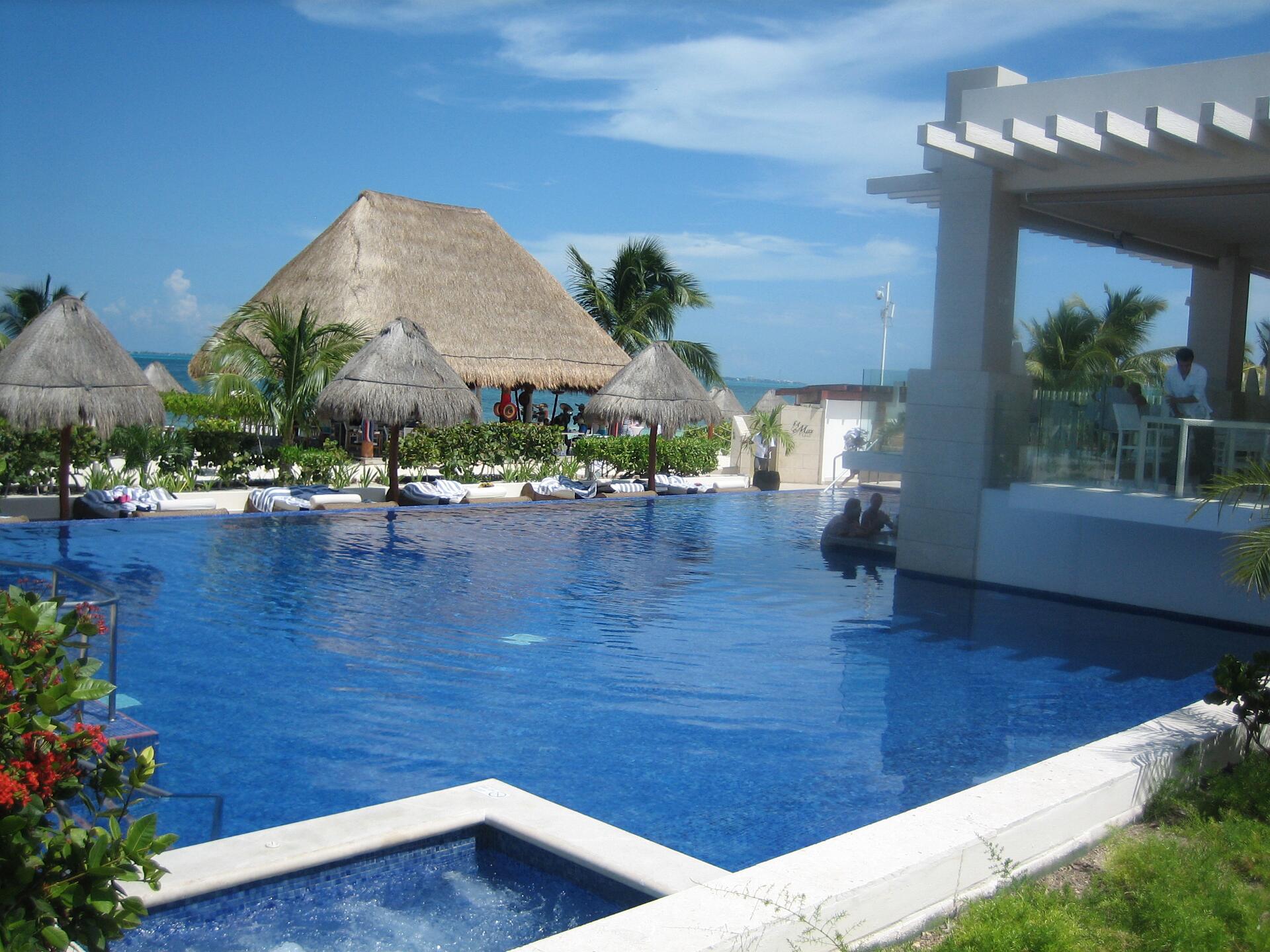 Pool with a swim-up bar.